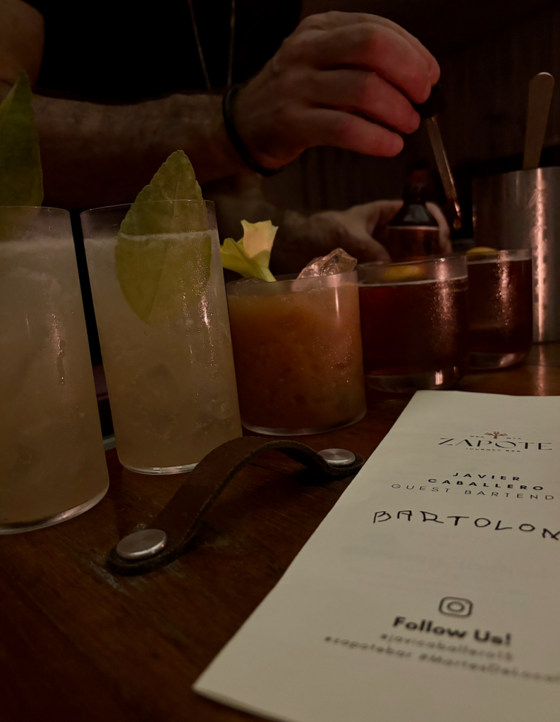 Con la casa lista, el martes fue pura hospitalidad con intención. Javier Caballero llegó con ganas de su primer guest shift en muchos años —y no pudo ser mejor—: un ambiente increíble, comensales con apetito de probar cosas nuevas y un equipo de Zapote Bar que hizo magia para que todo fluyera. Barra y sala respiraron al mismo ritmo; cada pase salió con precisión y cada cóctel contó su historia. Noche redonda.