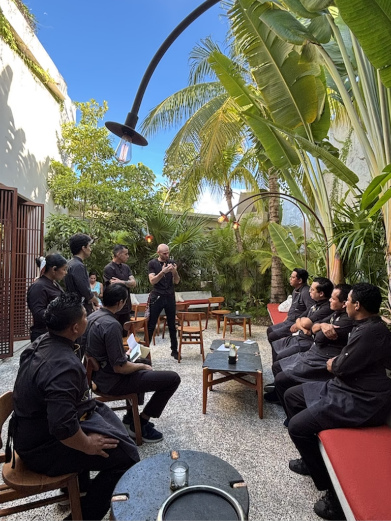 En Zapote Bar (Rosewood Mayakoba, Riviera Maya), integrante de North America’s 50 Best Bars, vivimos una acción en dos tiempos: el lunes trabajamos puertas adentro con su equipo; el martes abrimos la barra en un takeover que puso la casa a vibrar.